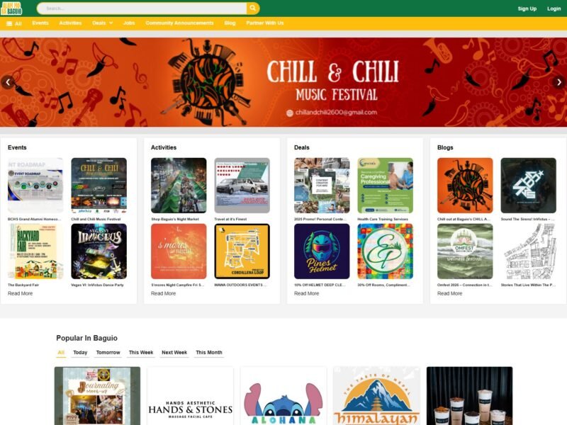 I developed a dynamic web platform that connects residents and visitors to Baguio City’s vibrant local culture. The site features event listings, local business promotions, job boards, and curated content highlighting arts, music, and cultural experiences. My role focused on creating an intuitive, mobile-friendly interface and building modular listing systems that allow easy content management. The platform empowers small businesses, engages the community, and showcases Baguio’s unique identity, making it a go-to hub for locals and tourists alike.